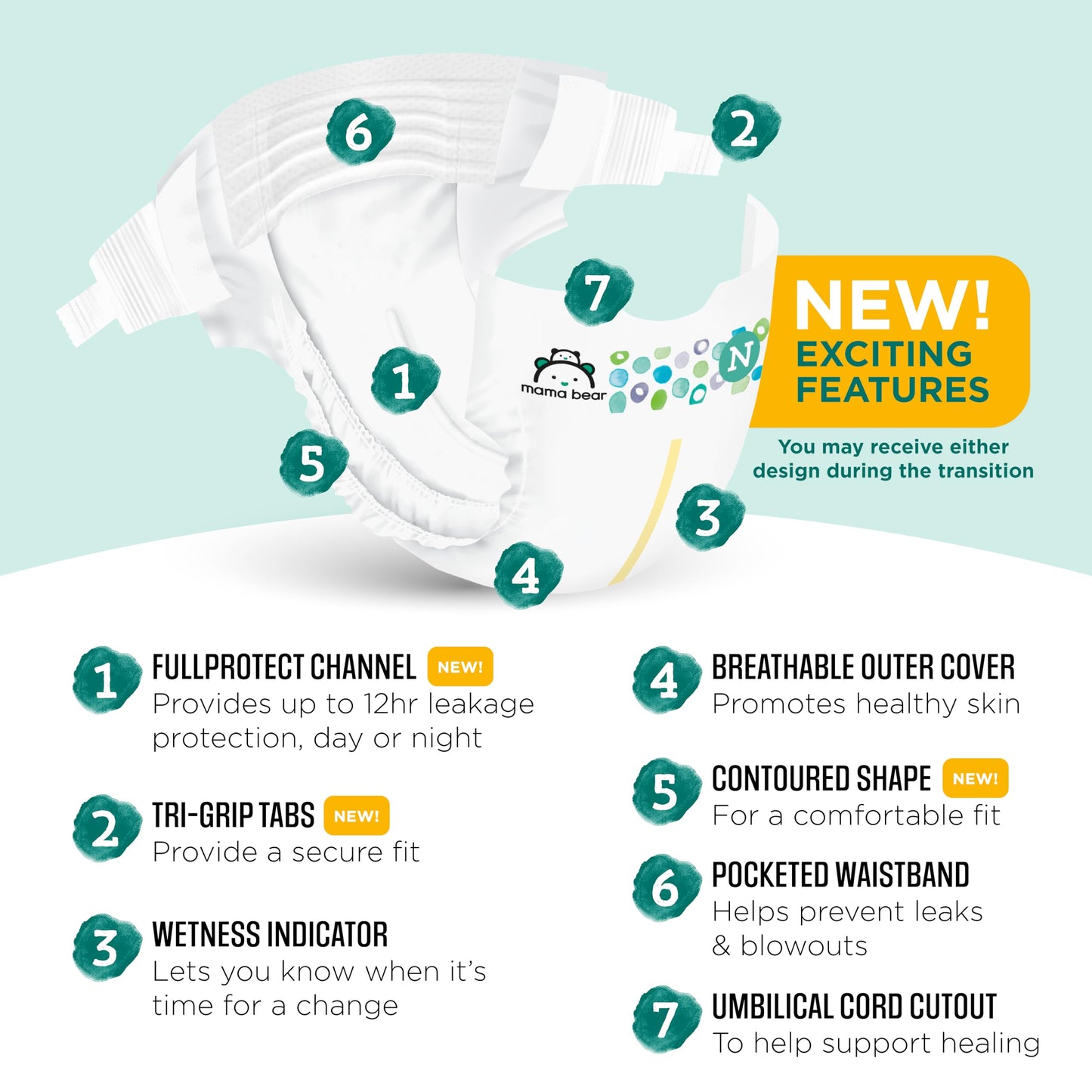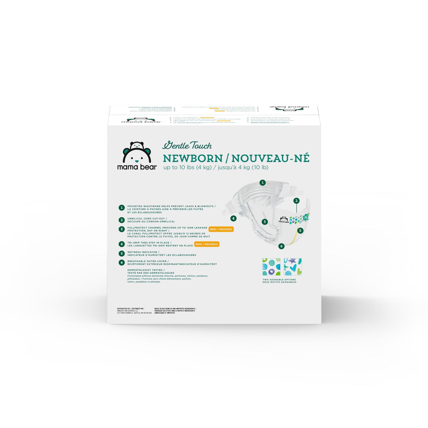 - IN THE BOX: Mama Bear Gentle Touch diapers for babies; size NB; (4 packs of 30 diapers each, 120 total)