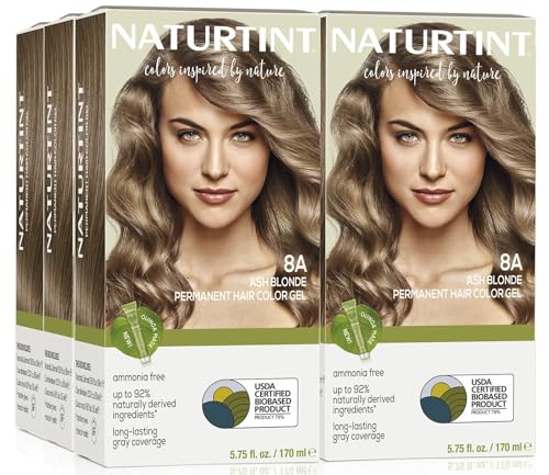 Naturtint 8A Ash Blonde Permanent Hair Color (Pack of 6), Ammonia Free, Vegan, Cruelty Free, up to 100% Gray Coverage, Long Lasting Results (Packaging may vary)