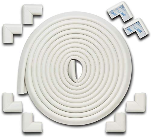 Roving Cove HeftyFit Edge Corner Protector Baby Proofing (Large 18ft Edge 8 Corners), Heavy-Duty, Soft NBR Rubber Foam, Furniture Fireplace Safety Bumper Guard, 3M Adhesive, Oyster White (Off White)