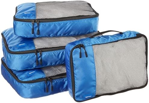 Amazon Basics Packing Cubes for Travel, Packing Organizers Set, 4-Piece-Set (2 Medium And 2 Large) With Double Zipper Pulls and Mesh Top Panel, 100% Durable Polyester, Blue