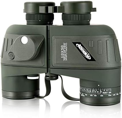 AOMEKIE Marine Binoculars for Adults 10x50 Waterproof Binoculars with Rangefinder Compass BAK4 Prism FMC Lens for Birdwatching Hunting Boating
