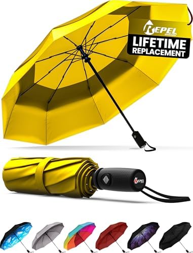 REPEL Windproof Travel Umbrella - Compact & Withstands Winds up to 85MPH , Strongest Premium Auto Folding Umbrella for Rain and Sun - Durable, Light & Portable for Women & Men , Fits Backpack & Cars
