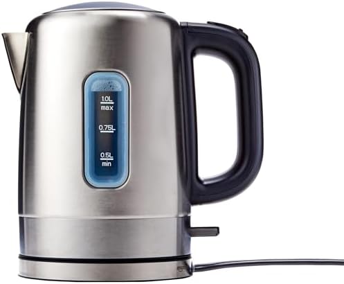 Amazon Basics Electric Stainless Steel Kettle for Tea and Coffee, BPA-Free, Fast Boiling, Auto Shut-Off, 1.1 Quarts, 1500W, Black and Silver