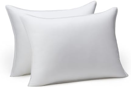 Amazon Basics Down Alternative Pillows for Stomach and Back Sleepers, Soft Density, Standard, Pack of 2, White, 26 in L x 20 in W