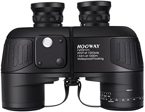 Waterproof Military 7x50 Marine Binoculars,Hooway Binoculars with w/Internal Rangefinder & Compass for Navigation,Boating(Black)