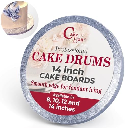 Cakebon Cake Boards - Sturdy 1/2 Inch Thick Drums - 14 Inch Professional Smooth Straight Edges Silver 12-Pack