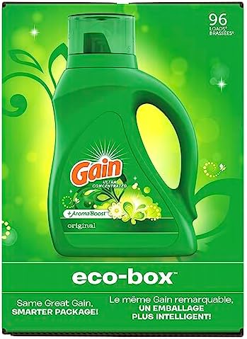 Gain Laundry Detergent Liquid Soap Eco-Box, Ultra Concentrated High Efficiency (HE), Original Scent, 96 Loads