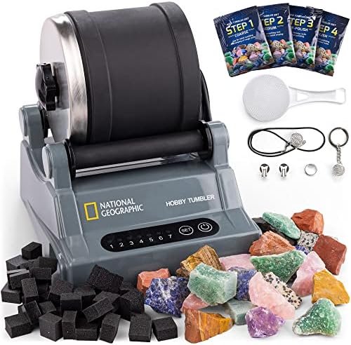 National Geographic Hobby Rock Tumbler Kit – Durable Leak-Proof Rock Polisher with 7-Day Timer, Complete Rock Tumbling Kit, Geology Hobby for Kids, Educational Science Kit, Rock Collection