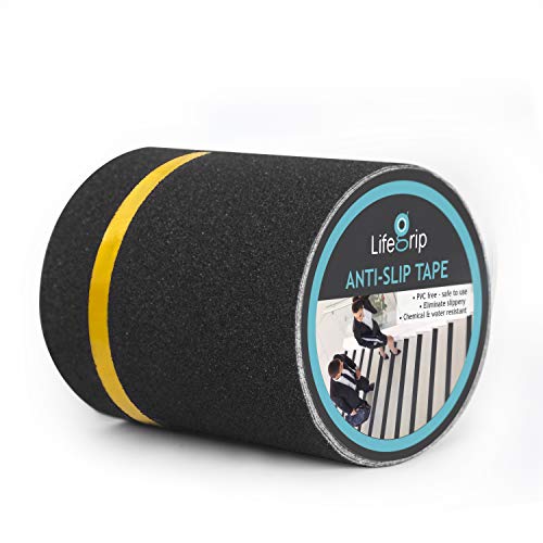 - MULT-FUNCTIONAL: Cost-effective, multi-functional safety product. 6 inch by 33 feet LifeGrip Anti Slip Safety Tape with Yellow Reflective Strip. In low light conditions where things are still visible, the reflective strip will reflect light and help attract the eye of any people close by, warning of potential hazards such as ledges or steps.