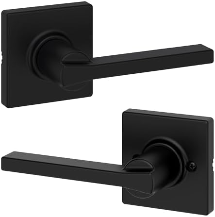 Kwikset Casey Interior Passage Door Handle, Lever For Closet and Hallway Doors, Reversible Non-Locking Handle Lever, Matte Black , with Microban Protection