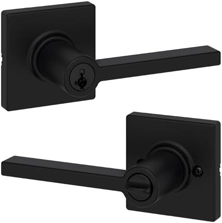 Kwikset Casey Entry Door Handle with Lock and Key, Secure Keyed Reversible Lever Exterior, For Front Entrance and Bedrooms, Matte Black , Pick Resistant Smartkey Rekey Security and Microban