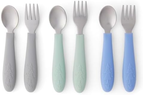 - BABY/TODDLER SAFE: The Elk and Friends spoons + forks feature a stainless steel narrow tips and an easy to grip ergonomic anti-slip silicone handle making it easy for small hands to hold