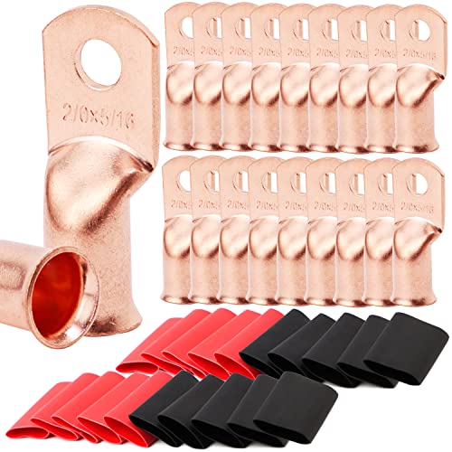 - 【What You Get:】 20 Pcs per pack of 2/0 Guage (AWG) 5/16" ring terminals, copper lugs closed end termination ring terminals with 20 Pcs 3:1 Dual Wall Adhesive Heat Shrink Tubing Tube for your work(10pcs Black and 10pcs Red).