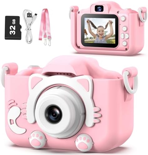 Goopow Kids Camera Toys for 3-8 Year Old Girls Boys,Children Digital Video Camcorder Camera with Cartoon Soft Cover, Best Chritmas Birthday Festival Gift for Kids - 32G SD Card Included