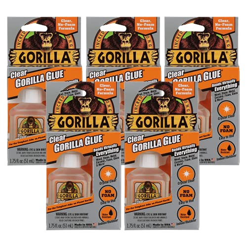 Gorilla Clear Glue, 1.75 Ounce Bottle (Pack of 5) - Crystal Clear, All Purpose, and Water Resistant