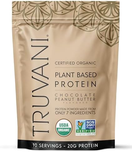 Truvani Vegan Pea Protein Powder | Chocolate Peanut Butter | 20g Organic Plant Based Protein | 10 Servings | Keto | Gluten & Dairy Free | Low Carb | No Added Sugar