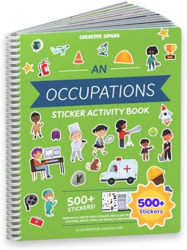 Sticker Book for Kids 2-4, 500+ Kid Stickers, When I Grow Up by Cupkin, 12 Coloring Pages, 12 Side by Side Scenes, Fun Toddler Travel Activity Coloring and Sticker Books for Kids Ages 4-8 + 8-10