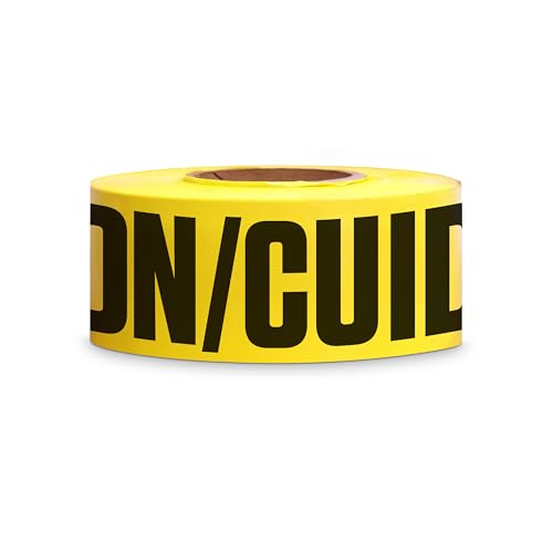 ATERET Premium Yellow Caution Cuidado Tape 12-Pack 3 inch x 1000 feet, Hazard Safety Tape, Construction Tape for Danger/Hazardous Area, Ideal Use for Halloween Decorations, Party, Work-Site