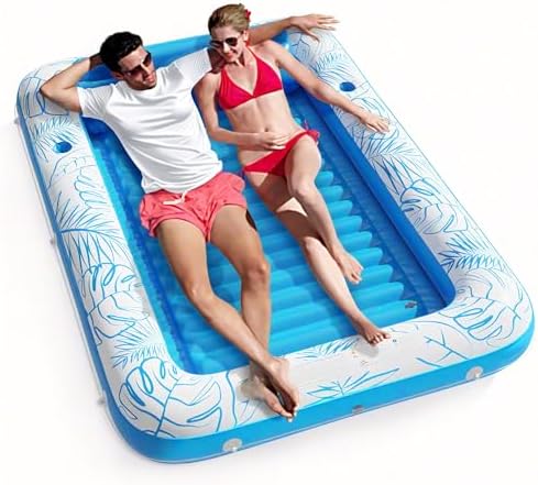 Jasonwell Inflatable Tanning Pool Lounger Float 4 in 1 Sun Tan Tub Sunbathing Lounge Raft Floatie Toys Water Filled Bed Mat Pad for Kids Adult Blow Up Kiddie Ball Pit Pool (XL)