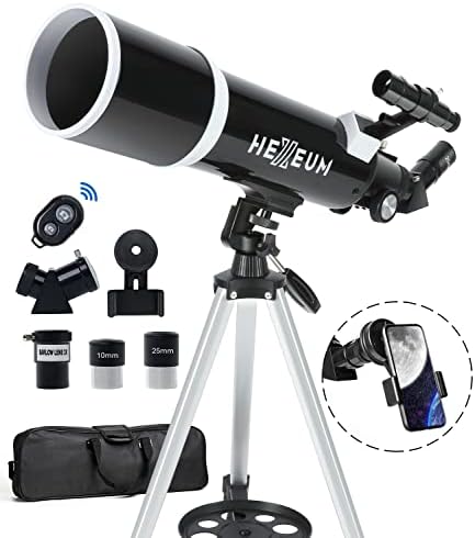- Portable & Convenient for Easy Stargazing: This telescope comes with a phone adapter, adjustable aluminum tripod, wireless remote control, and a carrying bag, making it portable and easy to capture breathtaking images from any location. Perfect for both beginners and experienced stargazers.