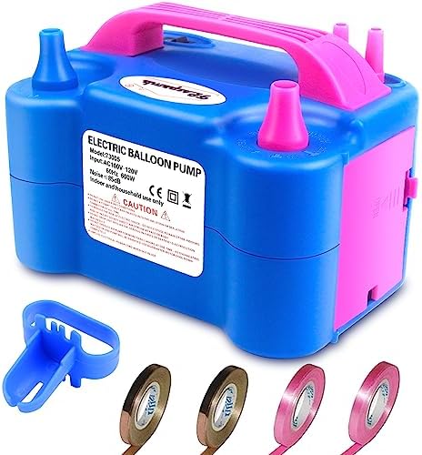 FLSEPAMB Balloon Pump, Electric Balloon Pump, Portable Dual Nozzle 110V 600W Electric Balloon Blower, Balloon Pump Electric for Party Decorations with Tying Tool, Colored Ribbons