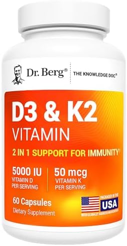 Dr. Berg Maximum Strength 7-in-1 Vitamin D3 K2 5000 IU | Naturally Derived D3 | 4X Lab-Tested & Verified | High Absorption Formula | K2 D3 Vitamin Supplement - 60 Capsules
