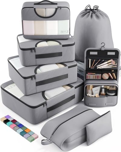 Veken 8 Set Packing Cubes for Travel Essentials, Suitcase Organizer Bags in 4 Sizes, Carry-On Luggage Accessories with Large Laundry & Hanging Toiletry Bag, Must-Have for Airplane, Road Trip & Camping
