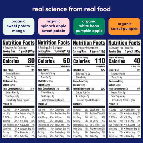 - VEGGIE FIRST, ORGANIC INGREDIENTS - Our BPA-free and Non-GMO organic baby pouches are crafted from whole foods like hearty pumpkin, apples or mangos! No added sugars, preservatives, gluten, dairy or nuts; our organic fruit and veggie pouches give your baby what their brain and body needs, right from the start.