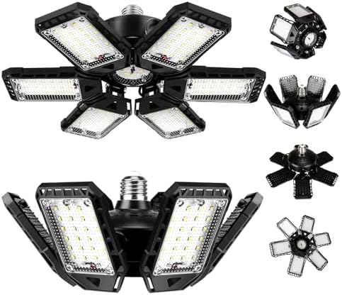 - 【6+1 Newest Garage Lights】With 6+1 deformable panels, the best led garage ceiling lights can be adjustable from 0 to 90 degree, which illuminate each corner of your garage in 360 full coverage without visual blind spots and dizziness. The workshop lights will provide better light than 3, 4 and 5 panel garage lights ceiling led on the market.