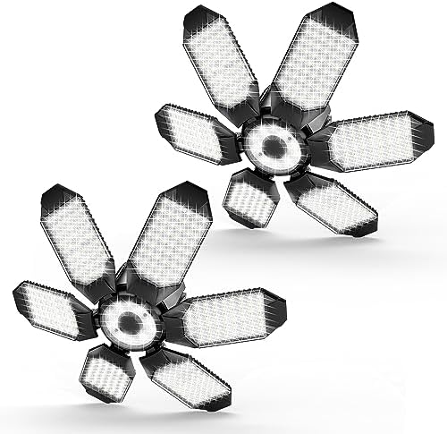 Garage Lights - 2Pack Super Bright 32000LM LED Garage Ceiling Light 6500K LED Shop Light w/ 6 Deformable Panels Screw in E26/E27 Socket Light Bulbs for Workshop Storage Warehouse Attic