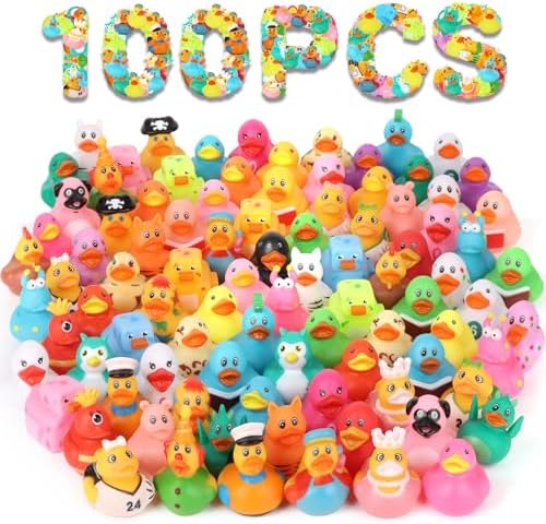 - 【Assorted Design and Style】There are 100 Pcs rubber ducks. Each duck with different designs and colors, Everyone can find their favorite styles from these rubber duckies