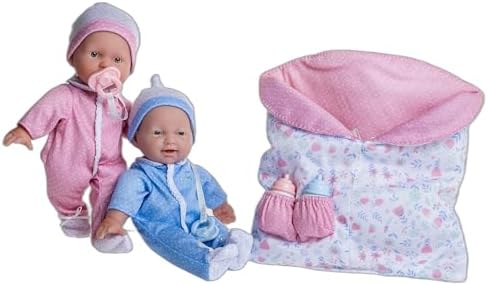 JC Toys La Baby 11" Soft Body Twin Baby Dolls – Removable Outfits and Reversible Sleeping Bag & Accessories– Small Baby Doll Toys for Children 12 Months +