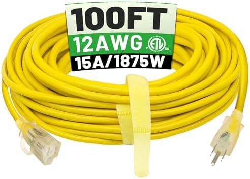 - Lighted End & Safe to Use: LED indicator lights up when long extension cord outdoor powered; Bright PVC jacket color makes this waterproof extension cord for outside easily visible outdoor and indoor; Avoid tripping in dark work environment; Each exterior extension cord 12/3 passed 1500V high voltage test to keep your appliance in safe
