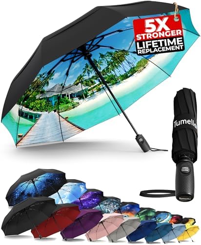 TUMELLA Strongest Windproof Travel Umbrella (Compact, Superior & Beautiful), Small Strong but Light Portable and Automatic Folding Rain Umbrella, Durable Premium Grip, Fits Car & Backpack