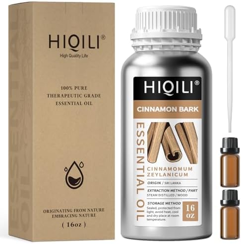 HIQILI Cinnamon Essential Oil for Candle, Spary & Diffuser - 100% Pure Natural - Indoor and Outdoor