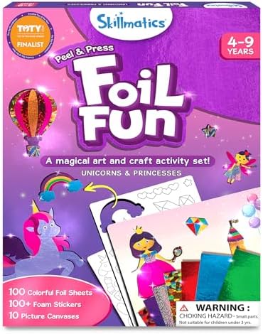 - FOIL ART & CRAFT ACTIVITY: Let your child's imagination soar with this magical, mess-free foil art and craft activity. They can create stunning pictures featuring princesses, fairies, and unicorns, sparking hours of creative play!