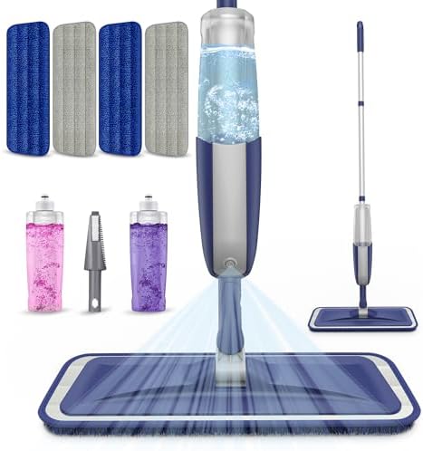 Wet Dust Mops for Hardwood Floor Cleaning - MEXERRIS Microfiber Spray Mops with 4X Reusable Washable Pads 2X Bottles Wood Floor Mops with Spray Home Commercial Use for Hardwood Laminate Tiles Floors