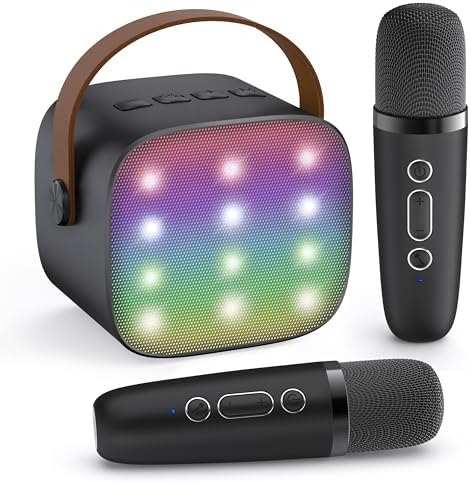 YLL Mini Karaoke Machine with 2 Wireless Microphones for Kids Adults, Portable Bluetooth Speaker, Popular Gift for 3, 4, 5, 6, 7, 8, 9, 10, 11, 12, 13+ Years Old Teens Birthday for Boys Home(Black)