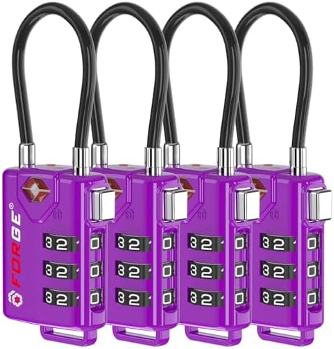 Forge TSA Approved Luggage Locks, Re-settable Combination with Alloy Body (Dark Purple 4 Locks)