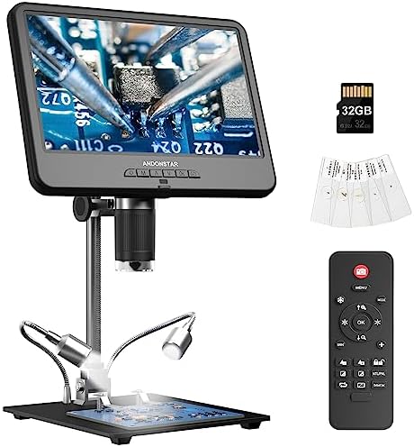 Andonstar AD210 10.1 Inch LCD Digital Microscope for Adults, Soldering Microscope for Electronics Repair, Coin Microscope Camera Full View for Error Coins with Light, Biological Slides Kit, 32G Card