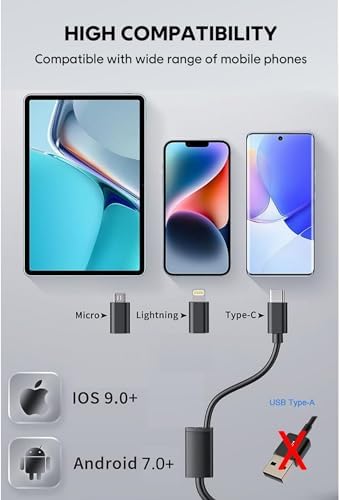 - Truly Portable & Easy Plug-and-Play: This mini, handheld microscope is designed for on-the-go exploration. No charging or Wi-Fi needed – just plug the included Type-C cable (with Lightning & Micro-USB adapters) into your Android 7.0+ or iOS 9.0+ device and start observing. Perfect for spontaneous discoveries