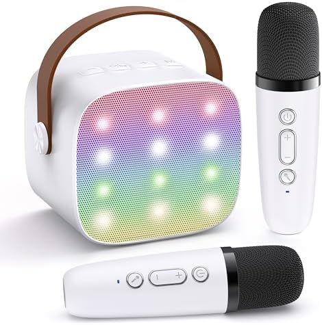 YLL Mini Karaoke Machine for Kids Adults, Portable Bluetooth Speaker with 2 Wireless Microphones,Toys Birthday Gifts for Girls 3, 4, 5, 6, 7, 8, 9, 10, 11, 12+ Years Old Toddler Teens(White)