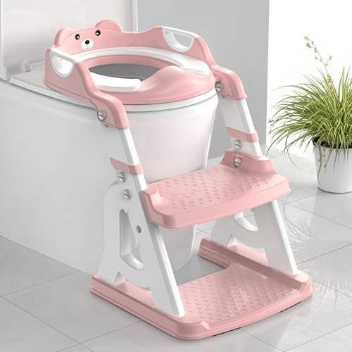 Potty Training Seat, Upgrade 2 in 1 Potty Training Toilet for Toddler, Toddler Toilet Seat for Boys Girls with Splash Guard, Anti-Slip Pad and Step Stool (Pink)