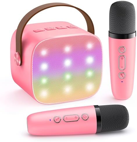 YLL Mini Karaoke Machine for Kids Adults, Portable Bluetooth Speaker with 2 Wireless Microphones, Most Popular Toys Birthday Gifts for Girls 4, 5, 6, 7, 8, 9, 10, 11, 12+ Years Old Toddler Teens(Rose)