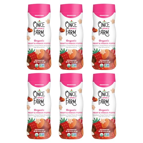 Once Upon A Farm Strawberry, Coconut & Sweet Potato Puffed Sorghum Snack, Fruit & Veggie Puffs, Non GMO, 1.5 Ounces (Pack Of 6)