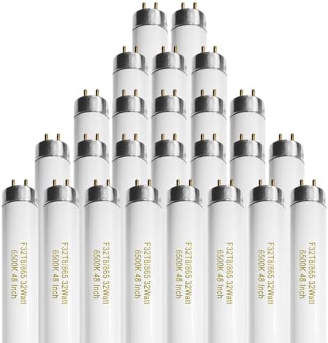 25 Pack T8 Fluorescent Bulbs 4 Foot, F32T8/865 Fluorescent Light Bulb 48 Inch 32 Watt 6500K Daylight 2500 Lumens G13 Base