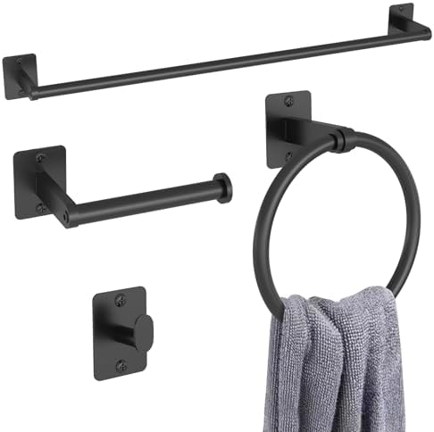 - Save Time & Money. The color and style are consistent across all the pieces. 4-Piece bathroom hardware set can meet the needs of the bathroom, no need to spend time and effort to purchase one piece by one piece.