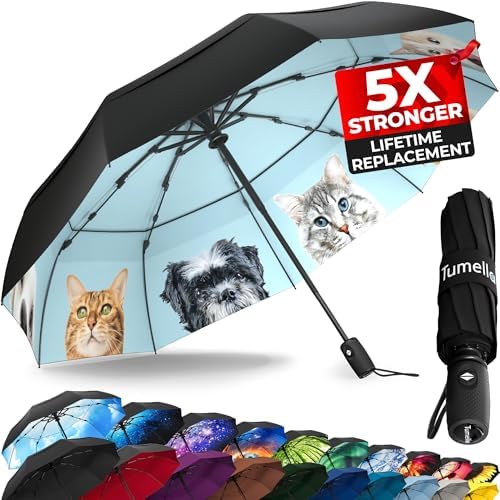 TUMELLA Strongest Windproof Travel Umbrella (Compact, Superior & Beautiful), Small Strong but Light Portable and Automatic Folding Rain Umbrella, Durable Premium Grip, Fits Car & Backpack