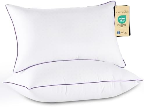 JOLLYVOGUE Pillows Queen Size Set of 2, Medium Supportive Bed Pillows with Super Soft Down Alternative Fill, Luxury Fluffy Hotel Quality for Side, Back, and Stomach Sleepers