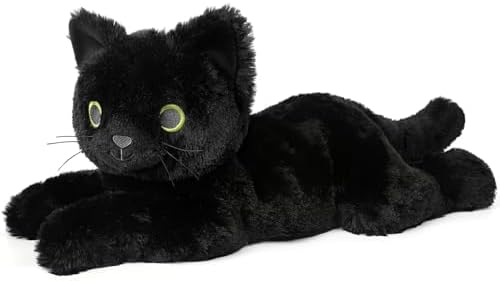 - LIFELIKE BLACK CAT APPEARANCE: This cat stuffed animal plush is a designer original! This cat plushie is approx: 14" x 6" x 7" in size.This sweet buddy is irresistibly soft, featuring shaggy fur, an endearing facial expression. A unique and delightful gift for any cat lover